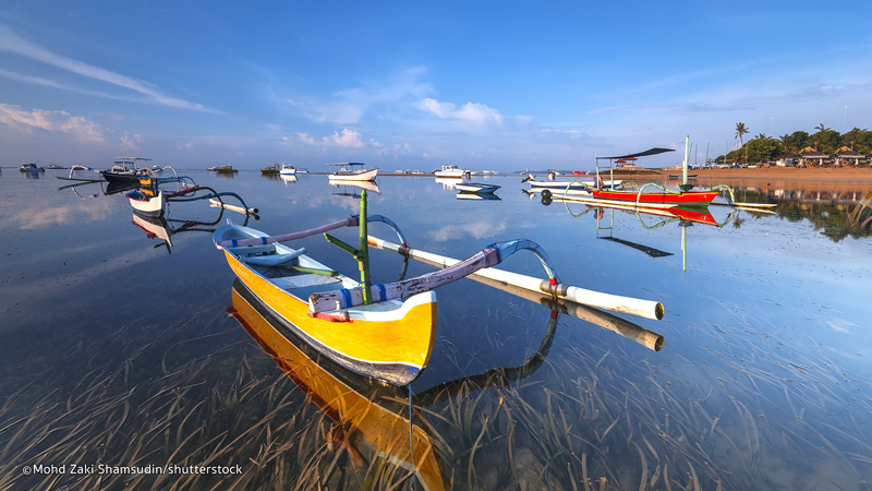 Sanur Beach, Bali's earliest beach resort, features a relaxed coastal ambiance. Located on the eastern side of the island's isthmus, it is the opposite of Kuta, both in characteristics and nuance. The former fishing village maintains most of its charm and continues to attract repeat visitors, mostly from Europe. Among Bali’s first hotels and beachfront retreats, together with an eclectic mix of restaurants, shops and bars and an assortment of innovative and modern entertainment venues share the Sanur Beach coastline.