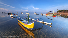 Sanur Beach, Bali's earliest beach resort, features a relaxed coastal ambiance. Located on the eastern side of the island's isthmus, it is the opposite of Kuta, both in characteristics and nuance. The former fishing village maintains most of its charm and continues to attract repeat visitors, mostly from Europe. Among Bali’s first hotels and beachfront retreats, together with an eclectic mix of restaurants, shops and bars and an assortment of innovative and modern entertainment venues share the Sanur Beach coastline.
